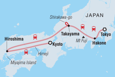 Experience Japan’s perfect harmony of ancient tradition and a modern way of life on this 12-day Premium adventure through the cultural heart of the country. You’ll start among Tokyo’s soaring skyscrapers, making your way to Hakone’s mountainous hot springs and find the meaning of relaxation in a cloud of fragrant steam. Then, head to Takayama, which delights with its Edo-era beauty. Shirakawa-go immerses you in charming countryside life before you discover the intriguing cultural diversity of Kyoto. Find a passion for peace in Hiroshima, take a sushi-making class with an expert, soak away your worries in an onsen and travel with a local leader who will share the rich variety of their country as you visit temples, castles, shrines and holy mountains.