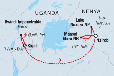 Wild dreams come true on a 13-day Premium journey through Uganda, Rwanda and Kenya. Enter the world of rare mountain gorillas in Uganda’s Bwindi Impenetrable Forest and spend a day tracking and observing these endearing creatures. See sombre reminders of Kigali’s devastating past, watch local life play out on the streets and witness a beautiful country that's continuously striving to move forward. Explore the vast plains of the Maasai Mara from the comfort of four-wheel drive Landcruisers, with an expert local leader at the helm, meet Maasai warriors and learn about their way of life. This unforgettable journey is sure to stay etched on your mind forever.