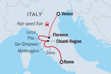 Uncover the warmth and richness of Italian culture as you journey from Rome to Venice on an eight-day Premium adventure. Travel through the rustic heart of Tuscany as you seek out culinary delights and tucked-away treasures among the rolling countryside. Explore the wonders of Venice’s Piazza San Marco, Pisa’s Leaning Tower and Rome’s Colosseum – one of the Seven Wonders of the World – with an expert local leader. From ancient monuments and lively cities to sprawling vineyards and traditional Tuscan cuisine – this adventure will make memorable moments for both the Italian novice and maestro.