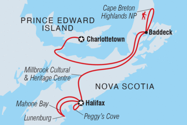 Colourful fishing villages, seaside hiking trails, a famous lighthouse and a Prohibition-era rum-running town all await you on this week-long trip that shows off Nova Scotia’s most iconic highlights. From the rocky shores of Peggy’s Cove to the Skyline Trail of Cape Breton, you’ll discover why this corner of Canada is so beloved by all who visit. Explore the UNESCO World Heritage site of Lunenburg, tour the historic town of Baddeck, hear local Cape Breton music with its signature fiddle, drive the spectacular Cabot Trail and shop for locally made Mi’kmaq arts and crafts, all before finishing up on Prince Edward Island.