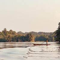 Travel to Tiwai Island, a community-led wildlife sanctuary known as the “Land of the Apes.” The island is home to chimpanzees, colobus monkeys and other species, though sightings are rare due to the impact of past hunting and conflict. What makes Tiwai special is the sense of wilderness: towering trees, dense forest and the feeling of being far removed from the outside world. This afternoon, take in the scenery on a boat cruise along the Moa River before joining a community-led night walk through the forest to experience the island after dark.