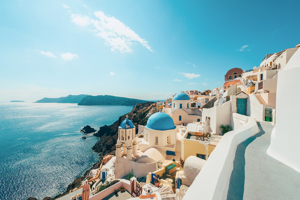 - Santorini: Enjoy a day trip to Fira and bask in the golden sun as you walk through Santorini's iconic white houses and blue domes