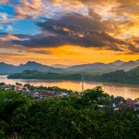 Take a bullet train across the border to Luang Prabang this morning. Your leader will be on hand to assist with any border formalities. After checking into your hotel in the early afternoon, stretch your legs on an orientation walk with your leader to find your bearings in this UNESCO-listed city. Once the capital of the ancient Lao Kingdom (Lan Xang), Luang Prabang is a city of opulent Buddhist temples and French Indochinese architecture set in the lush northern highlands. Then, enjoy a few hours of free time before regrouping to watch the sun set over the city and its surroundings on the sacred Wat Phu Si hill. There’s an optional dinner tonight at Talad Mued Night Market to try sindad – a traditional communal BBQ set on a charcoal stove with a rim full of boiling broth to blanch veggies.