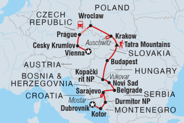 Travel from Vienna to Dubrovnik on this 29-day adventure through Austria, the Czech Republic, Poland, Slovakia, Hungary, Serbia, Bosnia-Herzegovina, Montenegro and Croatia. Discover a region where the past continues to weave its spell through alpine towns, medieval castles and sacred monasteries. Visit St Stephen’s Cathedral in Vienna, wander through the Auschwitz-Birkenau State Museum and explore Durmitor National Park – a UNESCO World Heritage site. Wander through the neighbourhood of Zemun, hike the Tatra Mountains and take a daytrip to Mostar. Traversing nine countries, this trip showcases the best of Central Europe while giving you plenty of free time to experience its culture and people in your own way.