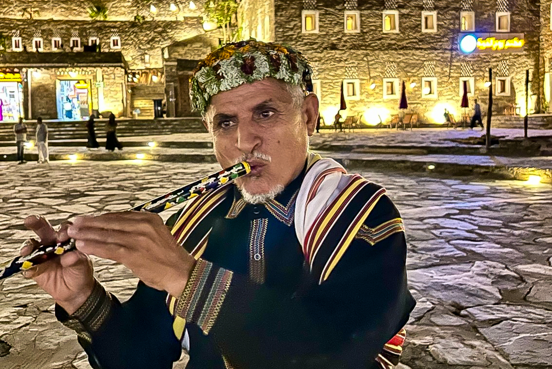 After breakfast, you’ll explore Al Muftaha art district – one of Abha’s most iconic heritage landmarks. Its closely built houses, painted in vibrant Asiri patterns, tell stories of the region’s rich culture. Wander through art galleries, museums and workshops that showcase the work of local artists or perhaps have a coffee in this lively hub. Continue to Souq Al Thulatha – one of Asir’s oldest bazaars, where you can chat with honey traders, browse textiles and pottery, and soak up the community spirit that has thrived here for centuries. Later, step into the home of Assas, a beloved local cook, for an intimate meal of traditional Asiri dishes like haneeth (slow-roasted lamb) and masoub (banana bread pudding), paired with fragrant Qahwa coffee. End the day with a visit to the visit to the home museum of Fatima Faye Al-Almaai, famed for her conservation efforts towards the UNESCO-recognised art form of Al-Qatt Al-Asiri the female owned Qatt Asiri.