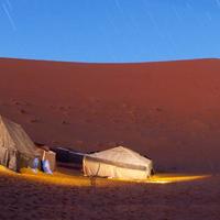 Today we embark on a scenic drive followed by an optional tasty Moroccan lunch (not included) and an afternoon relaxing and swimming. Then we head out to towards the Erg Chebbi dunes located near the remote frontier town of Merzouga. The dunes are renowned for their incredible height and size. In parts the vast sand pile reaches skyward to heights of 150 metres! Transferring to our camels we trek into the Sahara for a night at our Berber Camp. Tonight, we enjoy a local meal, music and an amazing night out under the Saharan stars.