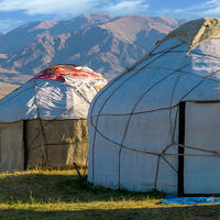 This morning, watch the beautiful landscape change as you drive to Kyrgyzstan. Along the way, stop at Burana Tower – a minaret that’s the most visible remnant of the ancient city of Balasagun. Then, continue to Don Aryk, where you’ll meet a local Kyrgyz family and sit down for a home-cooked lunch. After, continue to today’s destination – Issyk-Kul Lake. At 170 km long and 70 m wide, the Issyk-Kul Lake is the second-largest alpine lake in the world. Your yurt camp for tonight is set up along the south shore of the lake where you'll get a fantastic view of the snow-capped mountains setting behind the lake. Made of felt and tarpaulins on a round frame, yurts are the traditional dwellings of the Kyrgyz people, and this will be your 'settlement' for today and tomorrow.