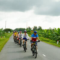 This morning you’ll hop on the bus and drive to the Mekong Delta – known as the ‘rice bowl of Vietnam.’ The fertile delta is famous for its harvest of tropical fruit, flowers and rice, as well as the waterside views over the canals. When you arrive, you’ll get on your bike for the first full day of cycling. Ride along quiet backroads, past farms and villages and make a stop for lunch. You’ll also get to visit orchards and some local cottage industries. Around sunset, make your way up one of the canals by boat to reach your homestay. Tonight, you’ll stay with a local family in their home and sit down for a homecooked dinner of local specialties.