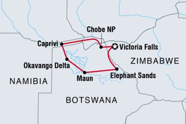 On this nine-day wildlife-filled adventure, you’ll get to see Botswana’s inland delta, herds of elephants and the world's largest salt pans! Starting and ending in Zimbabwe's Victoria Falls and dipping into Namibia's Caprivi region, this trip celebrates both the natural and cultural highlights of Botswana. You’ll stay in a lodge overlooking a watering hole frequented by elephants, watch hippos wallowing along the shores of the Chobe River and paddle through the Okavango Delta in a traditional dug-out canoe. If it's a diversity of landscapes, wildlife and cultures you're after, then this is the ultimate trip for you!