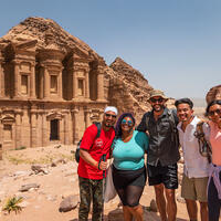 Petra is justifiably on most people’s list of ‘must-visit’ places. The iconic Petra view – the Treasury's glorious facade, glimpsed from the narrow cleft known as the Siq – is arguably the single most striking sight of the entire region. The Siq leads through the rock and is sometimes only a few metres wide, with walls soaring up to 180 metres on either side. Join your guide and explore the old Roman road, amphitheatre and several old tombs, before enjoying free time to experience Petra at your own pace. Maybe climb up to the Monastery, carved from a mountain summit, where you’ll find magnificent views of the entire site. To cap off a truly memorable day, be welcomed into a local home for dinner. On the menu will often be maqluba – a casserole with rice, vegetables and chicken which is cooked, flipped, then served with either yoghurt or an Arab salad with tahina sauce. Chat to your friendly family hosts about the delicious meal and what life is like in such a popular spot.