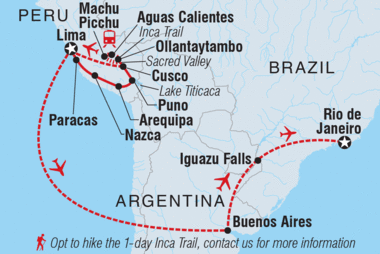 There are many sides to South America, from the energy of the cities, the beauty of the lansdcapes and the spirit of its people. Discover it all on this trip that winds through the Inca heartlands and jungles of Peru, the enigmatic cities and natural wonders of Argentina and the dynamism of Brazil's vivacious Rio. See animals, meet locals, traverse trails and marvel at all the contrasts of this very special corner of the world.