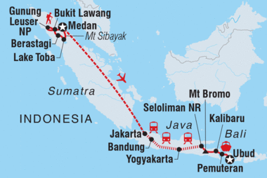 Far from ‘just another island getaway’, Indonesia is in many ways a whole world of its own, a sprawling constellation of islands all with something unique to offer. Spend 24 days exploring the diversity of this beautiful country, starting out in Indonesia’s wild west – on the island of Sumatra –and travelling east through Java and into Bali (everybody’s favourite island getaway for a reason). Move effortlessly from Christian Batak to Hinduism and Buddhism, remote jungles to vast beaches, volcano valleys to urban villages and streetside warungs to temple complexes. For the ultimate South East Asian adventure, take the dive – with a small group of like-minded travellers and an expert local leader!