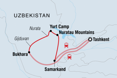 Take an adventure through Uzbekistan, a country famous for its ancient Silk Road cities overflowing with mosques, mausoleums and mystery. Beginning and ending in Tashkent, the nation's capital, this trip will have you following in the footsteps of traders, pilgrims, Alexander the Great and Tamerlane himself. Walk in the shadows of ancient, blue-tiled buildings, sleep in a yurt under thousands of desert stars and spend an evening at a home stay with a family in the Nuratau Mountains.